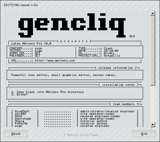 NAME.: GCT.zip tEAM.: GENCLiQ GCT tYPE.: Zip / Windows DATE.: 2008 SiZE.: 42.49 KB LiNKS: [DOWNLOAD] [DF2 MiRROR] [ViRSCAN]