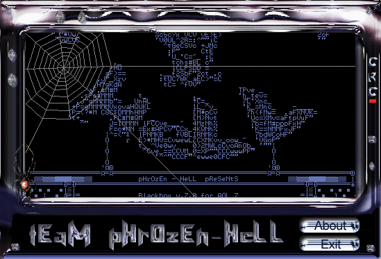 NAME.: p-HeLL.zip tEAM.: PHROZEN HELL PH tYPE.: Zip / Windows DATE.: 2002 SiZE.: 68.04 KB LiNKS: [DOWNLOAD] [DF2 MiRROR] [ViRSCAN]