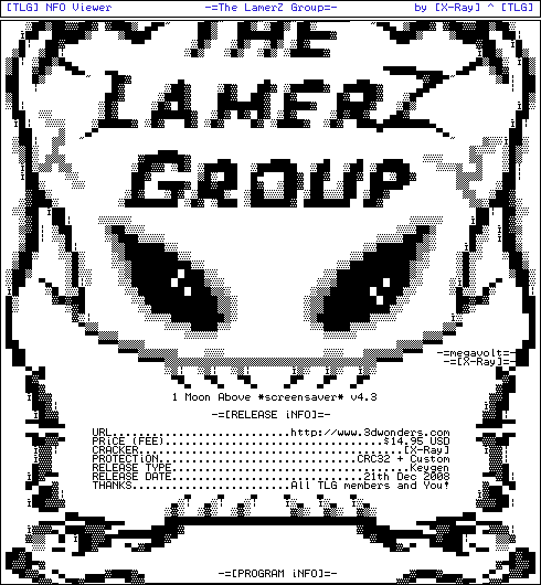 NAME.: tlg.nfo.viewer.zip tEAM.: THE LAMERZ GROUP TLG tYPE.: Zip / Windows DATE.: 2008 SiZE.: 15.56 KB LiNKS: [DOWNLOAD] [DF2 MiRROR] [ViRSCAN]