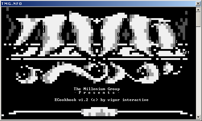 NAME.: TMG1.zip tEAM.: THE MiLLENiUM GROUP TMG tYPE.: Zip / Windows DATE.: 2001 SiZE.: 12.96 KB LiNKS: [DOWNLOAD] [DF2 MiRROR] [ViRSCAN]